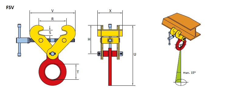 Modèle FSV / FSVS / FSVSU : Pince à vis polyvalente pour poutre